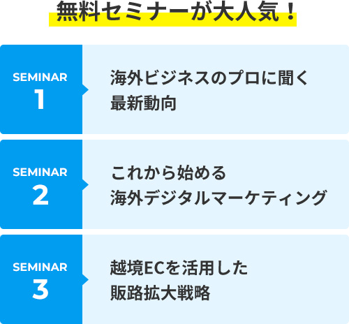 海外ビジネス/インバウンドビジネス/グローバル人材活用のプロによる多種多様なセミナーが聞ける!