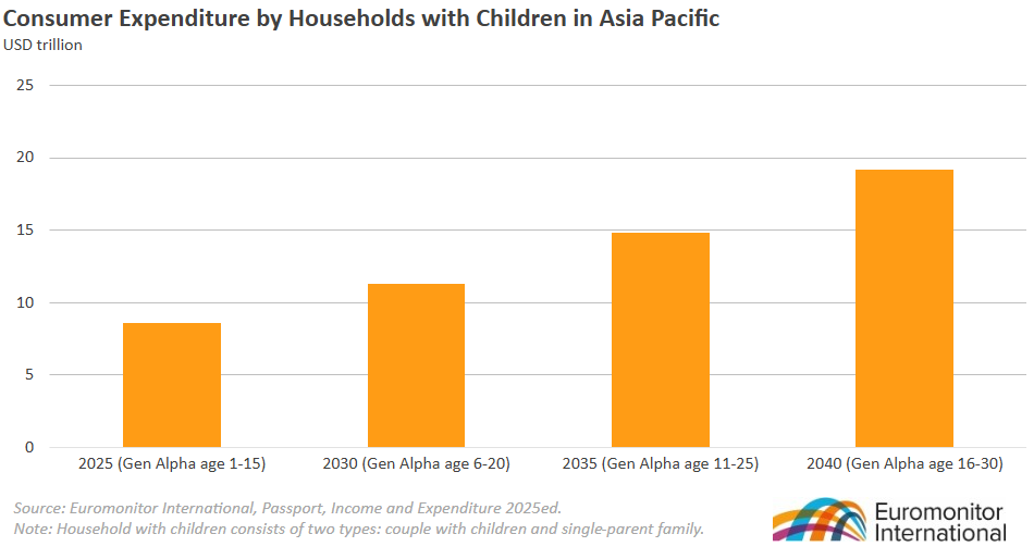 2010年代以降に生まれ、デジタル環境の中で育ってきたアルファ世代は、アジア経済における次世代の成長ドライバーになりつつあります。約10億人にのぼるアルファ世代が2040年までの消費トレンドを形づくる一方、現在はその保護者世代が家計の意思決定を担い、2025年には約9兆米ドルの家族支出を生み出しています。さらに、最年長のアルファ世代が就労を始める2030年以降、その消費規模は2040年までに約3兆米ドルに達する見通しです。