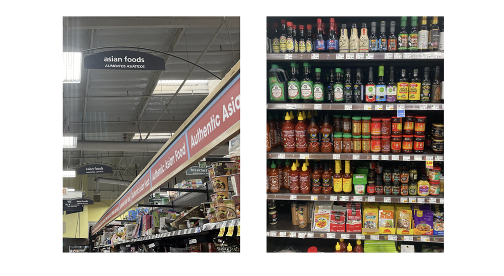 ローカルスーパーに行くとアジア食品を取り扱う棚が用意されていて、通称「アジア棚」と呼んでいます。その棚には以下の写真のように日本食品も並べられており、現地の人にも広く手に取ってもらえる機会を提供しています。