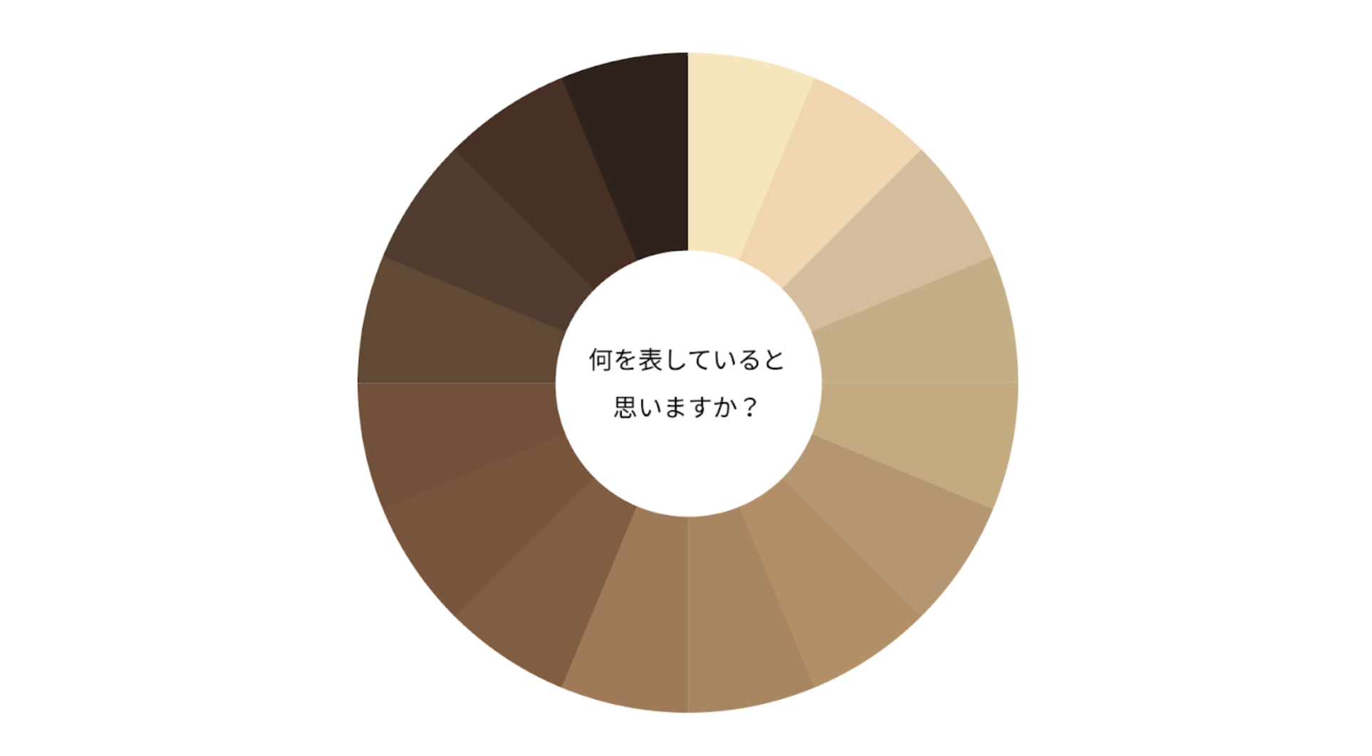 これはアメリカ人の肌の色です。化粧品売り場にいくと、様々な人種の方がこのチャートを見ながら自分にあったファンデーションを探している光景をよく目にします。