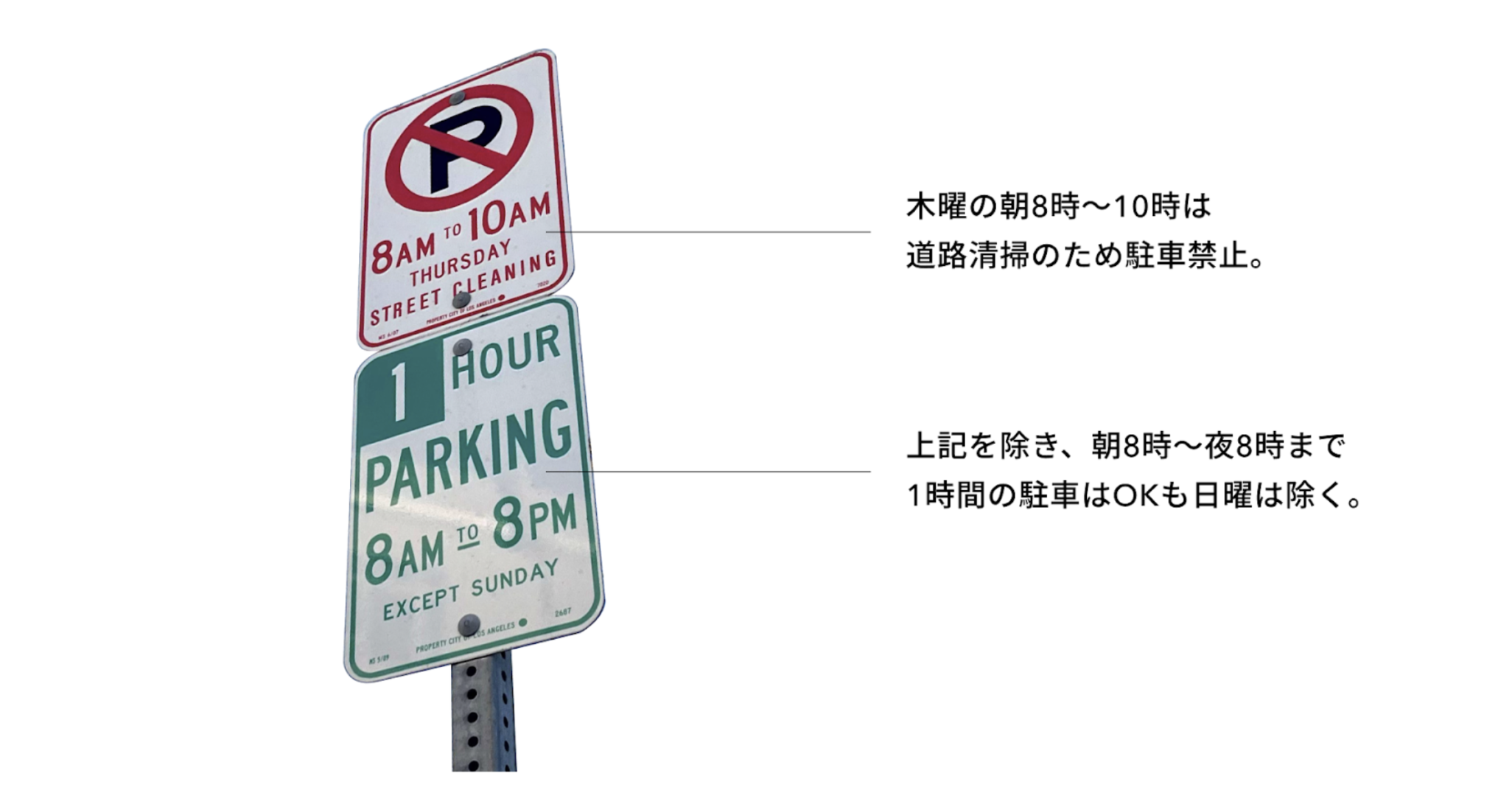 アメリカでは、文字をベースにしたコミュニケーションが非常に目立ちます。どういうことかと言うと以下の標識をご覧ください。