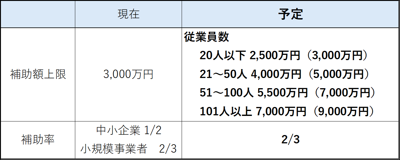 気になる補助額、補助率がどう変更されるのかについては、下表のとおりです。
