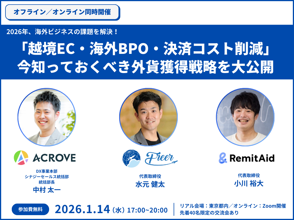 | セミナー名 | 《自社ECサイトをお持ちの方必見》集客支援型越境ECカートを活用し、海外からの売上を増やしましょう |