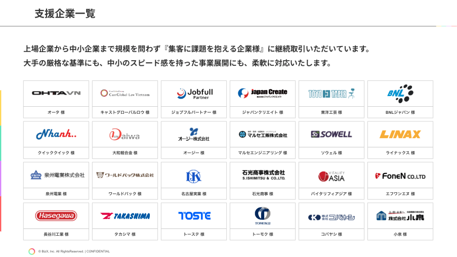 最大の特徴は、戦略立案から構成、デザイン、さらには翻訳や運用までプロに「丸投げ」できる点。実績に基づくノウハウで、引き合いの取れるサイトを構築します。作って終わりの制作会社とは違い、定額内で修正や更新も柔軟に対応。コストを抑えつつ、常に最新の状態で世界中の顧客へアプローチできる、BtoB企業の販路拡大に最適
